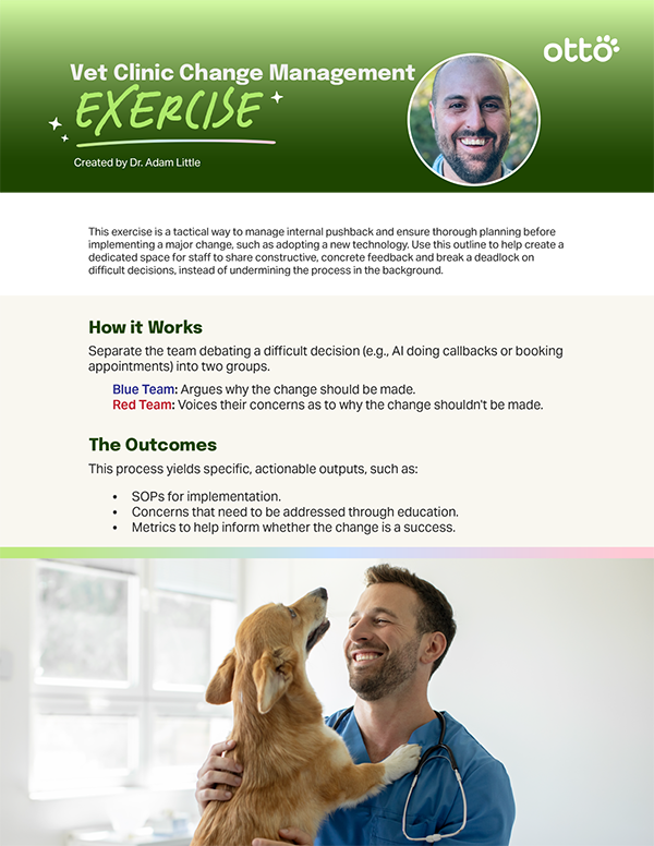 The Vet Clinic Change Management Exercise gives your team a shared framework to work through difficult decisions before they’re implemented.