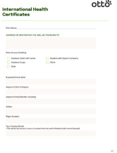 International Pet Health Certificate Form for Veterinary Clinics